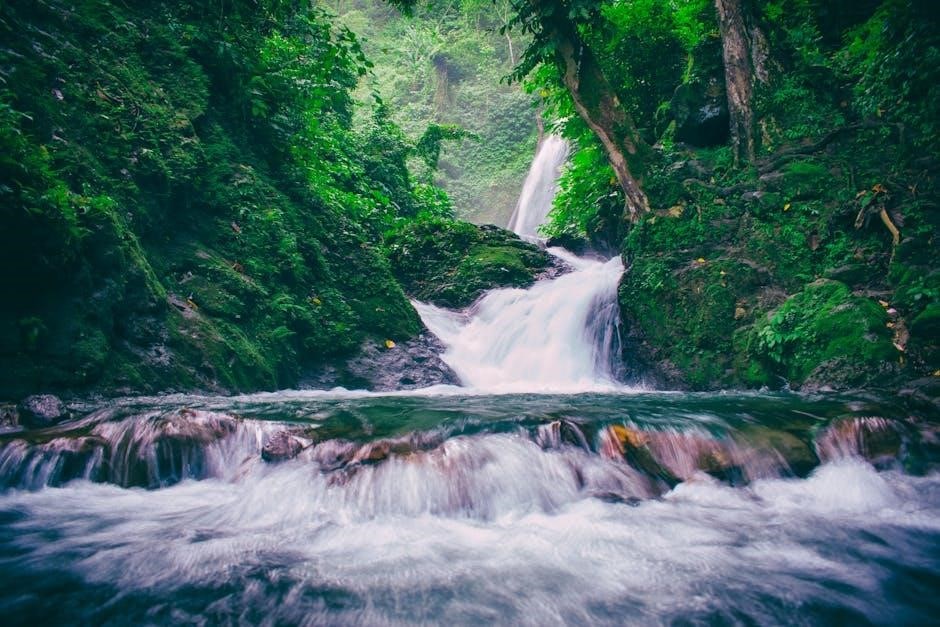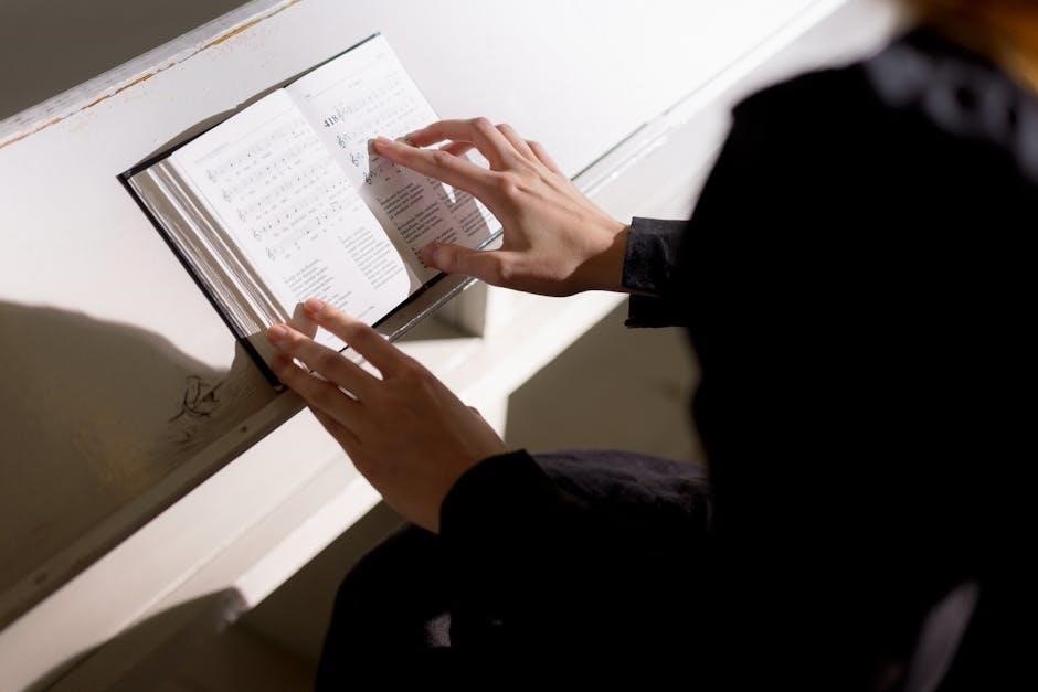 “River Flows in You” is composed in A major, featuring a simple yet emotive structure. The piece relies on arpeggios and broken chords, creating a flowing, rhythmic texture. Dynamics play a crucial role, with subtle crescendos and decrescendos adding depth. The tempo is moderate, typically around 96 BPM, allowing for expressive interpretation. Musicians should focus on maintaining a steady rhythm while conveying the piece’s emotional essence. The sheet music PDF provides clear notation, making it easier to follow the composer’s intent and master the technique.